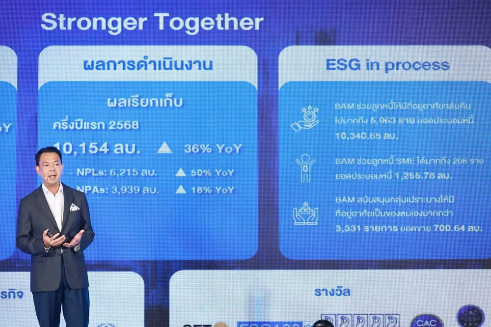 ดร.รักษ์ วรกิจโภคาทร ประธานเจ้าหน้าที่บริหาร บริษัทบริหารสินทรัพย์ กรุงเทพพาณิชย์ จำกัด (มหาชน) หรือ BAM กล่าวถึงผลการดำเนินงานครึ่งแรกปี 2568 ว่า โดยภาพรวมเป็นที่น่าพอใจ สามารถสร้างผลเรียกเก็บได้สูงถึง 10,154 ล้านบาท เมื่อเทียบกับช่วงเดียวกันของปีก่อนที่ทำได้ 7,493 ล้านบาท หรือโตถึง 36% ขณะที่ไตรมาสที่ 2 ของปีนี้ มีผลเรียกเก็บ 6,962 ล้านบาท เพิ่มขึ้นจากไตรมาสแรก ที่มีผลเรียกเก็บ 3,192 ล้านบาท หรือเพิ่มขึ้นมากถึง 118% และมีกำไร 1,511 ล้านบาท หรือเพิ่มขึ้น 72% จากช่วงเดียวกันของปีก่อนที่มีกำไรสุทธิอยู่ที่ 880 ล้านบาท ซึ่งผลงานทางด้าน NPL ยังใช้แนวทางที่ให้โอกาสลูกหนี้ในการได้หลักประกันซึ่งเป็นที่อยู่อาศัยหรือที่ทำกินกลับคืนไปด้วยเงื่อนไขที่ผ่อนปรน และมุ่งช่วยเหลือลูกหนี้ให้สามารถฟื้นฟูกิจการหรือสถานะทางการเงินของตน โดยปรับโครงสร้างหนี้และหาทางออกที่ดีที่สุดร่วมกัน ด้วยกระบวนการ Recycling Machine ซึ่งมีเป้าหมายในการเร่งสร้างโรงงานแก้หนี้ (TDR Factory) เพื่อฟื้นฟูให้ลูกหนี้กลับมามีสุขภาพทางการเงินที่ดีขึ้น ซึ่ง BAM สามารถสร้างรายได้จากการปรับโครงสร้างหนี้ NPL ลูกหนี้รายใหญ่รายหนึ่งได้ข้อยุติถึง 2,800 ล้านบาท